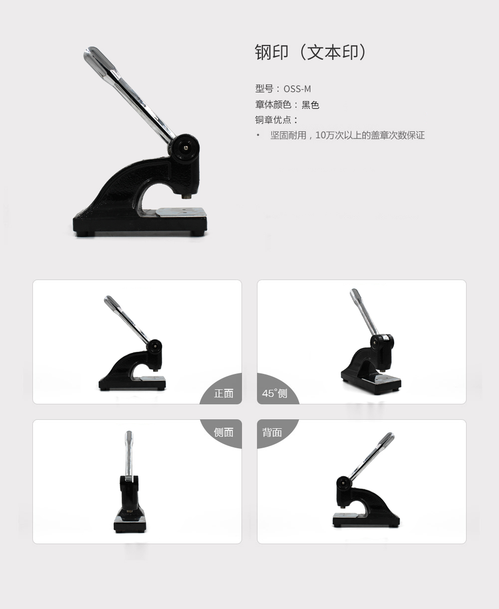 铸铁手动钢印产品适用于各大院校、政府部门等需硬件签证的单位或部门。总体说来,该机具有如下优点: